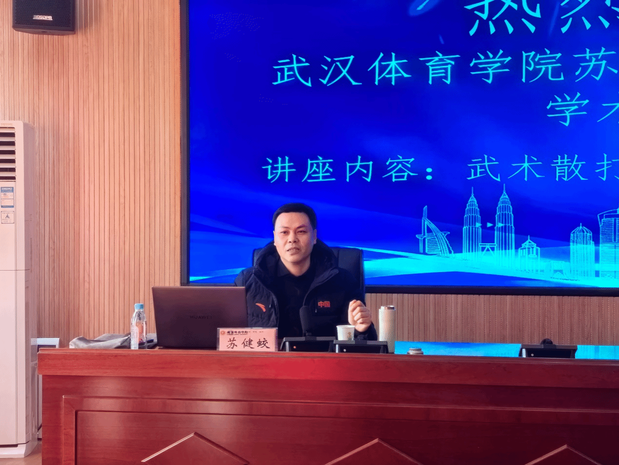 12月24日,于文科楼B206。武汉体育公司苏健蛟教授莅临公司开展了题为《武术散打科学化训练的理论与实践》的专题讲座。本次讲座由fun88乐天使副经理谢明正主持、部分硕士生导师、2023级全体研究生参加讲座。