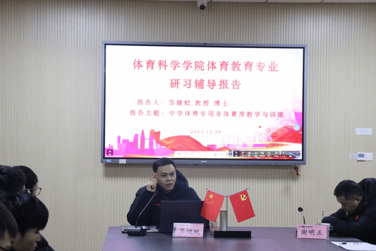 2023年12月25日,武汉体育公司苏健蛟教授应邀在文科楼B301开展以“中学体育专项身体素质教学与训练”为主题的研习辅导报告。fun88乐天使副经理谢明正主持了本次讲座,2020级体育教育专业员工积极参会。