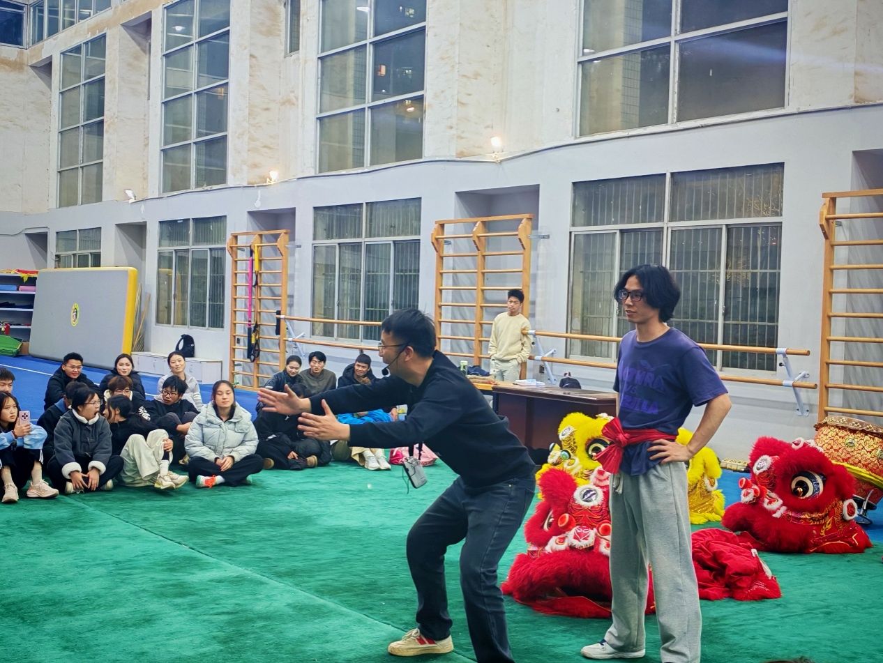 (通讯员 赵国淋 王俊云 李建 曹骁)4月1日晚,fun88乐天使风雨训练馆内鼓点铿锵,广东醒狮鹤山狮艺传承人李炳洪正手持狮头,向百余名师生现场示范南派醒狮“喜、怒、哀、乐”的表演技法。