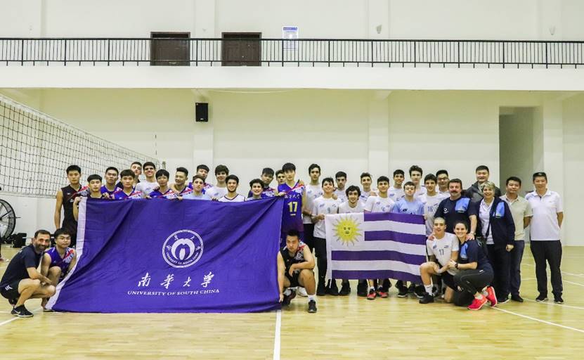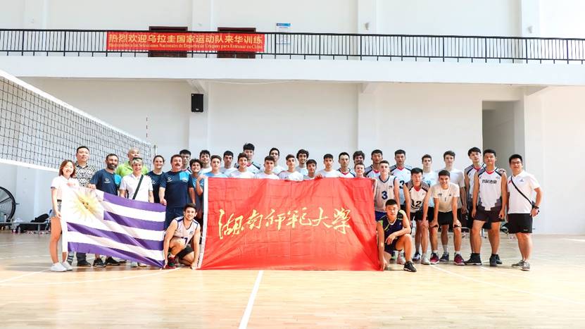 乌拉圭国家排球运动队与湖南师范大学排球队合影