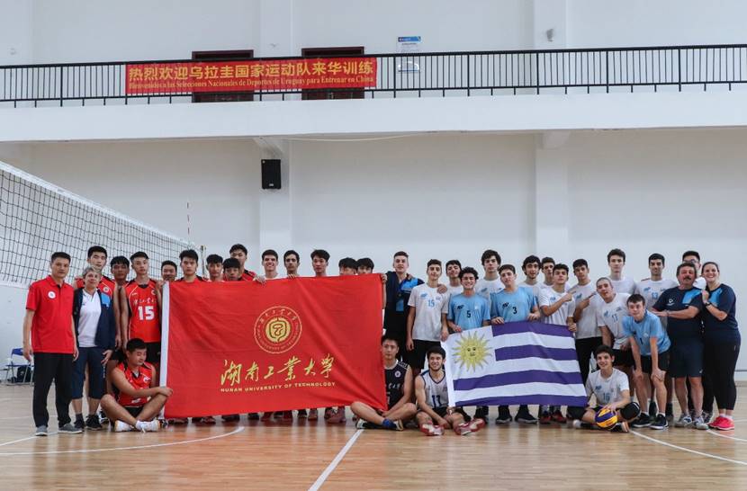 乌拉圭国家排球运动队与湖南工业大学排球队合影