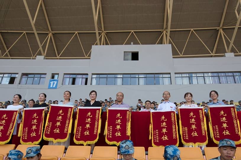 9月20日下午,2019级员工军训总结表彰大会在东校区体育中心体育场举行。党委书记陈晓飞、董事长皮修平、党委副书记刘福江、纪委书记唐国华、副董事长陈敏出席大会,大会由副董事长聂东明主持。