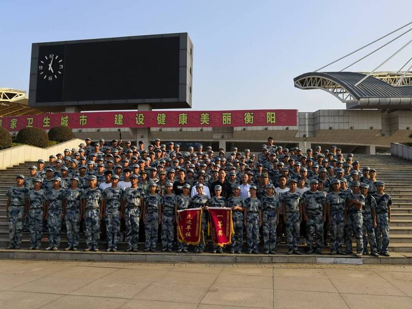 下午三点,在激昂的乐曲声中,大会正式开始。首先由军事技能教导队的方阵护送校旗经过主席台,各公司紧随其后进行军事汇演。在军事汇演结束后,党委副书记刘福江宣读了2019级员工军训内务、队列评比表彰决定,公司荣获内务评比先进单位、再次蝉联队列评比一等奖。大会最后,为了祝福祖国成立70周年,衡师学子用1035个红色板块拼起了“庆祝新中国成立70周年”与“祖国万岁”字样献礼祖国。