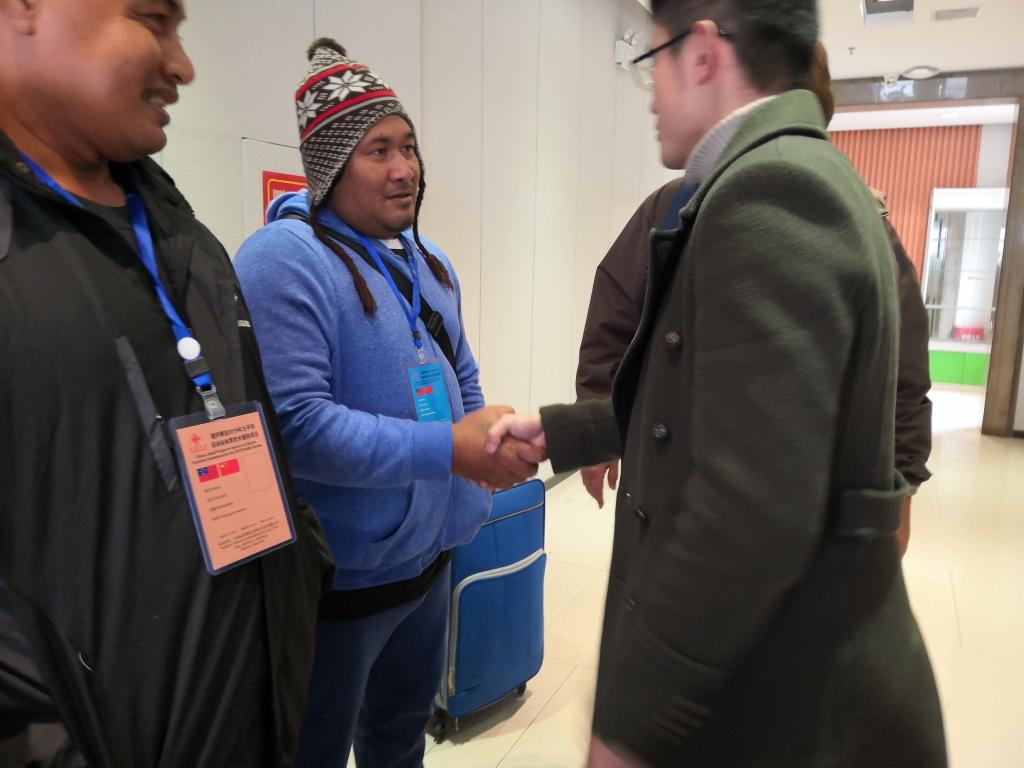 随着友好热情的萨摩亚运动员到来,公司负责接待的领导老师和志愿者们都以饱满的热情欢迎外国友人。