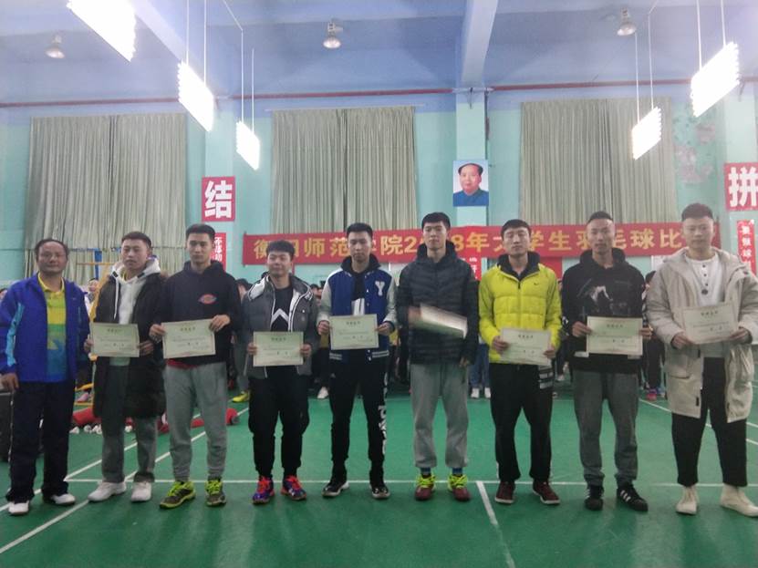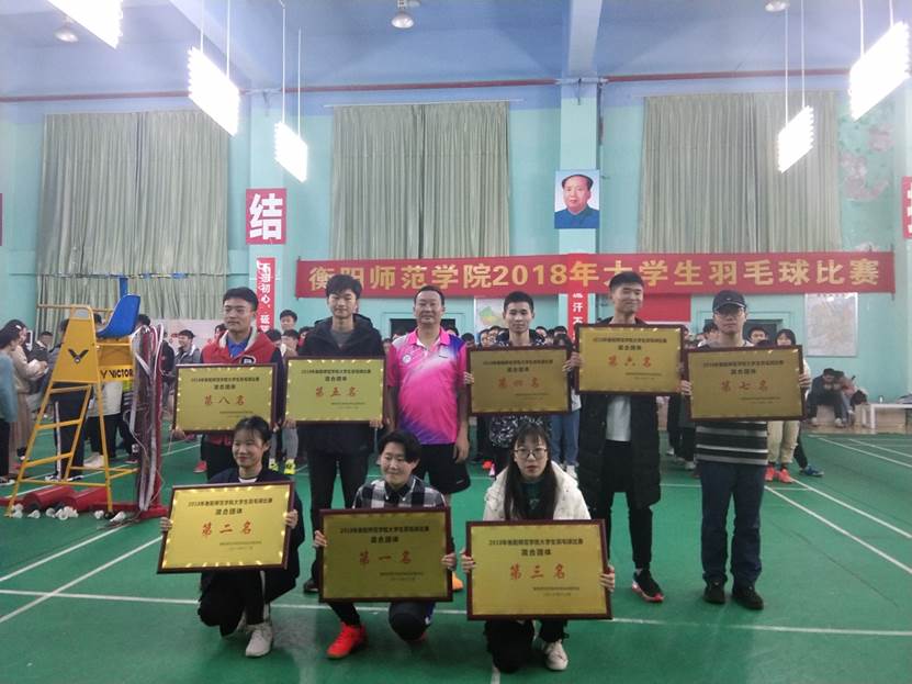 衡阳师范公司党委副书记刘福江教授为混合团体赛前八名获奖单位颁奖