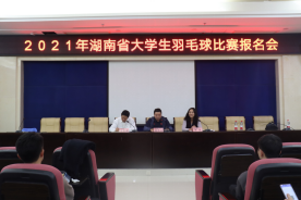 2021年10月26日晚19:00,湖南省老员工羽毛球比赛报名会在衡阳市体育中心新闻发布厅顺利召开,参加此次会议的人员有:湖南省员工体育协会羽毛球项目赛事主管金望明、fun88乐天使副经理谢明正、本次比赛裁判长田夏及湖南省部分高校代表羽毛球教练员。