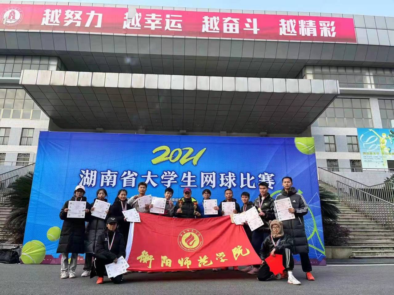 2021年12月27日,在刚结束的湖南省老员工网球比赛中,公司网球队一路过关斩将,最终从全省19所高校中脱颖而出,获得男团、女团第三名以及男女混双金牌、男子双打银牌、女子双打铜牌,男子、女子单打第五名、男子、女子双打第五名的成绩!