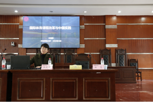 讲座中,汪晓赞教授简述了国际体育课程的实施方法和课程设计,并对中国体育课程和国外体育课程进行了详细的比较和分析。陈雁飞教授提出新时代的体育教师应“知政策、明政策、懂政策、用政策”;充满爱心、激情、睿智、尽责和富有创造性。