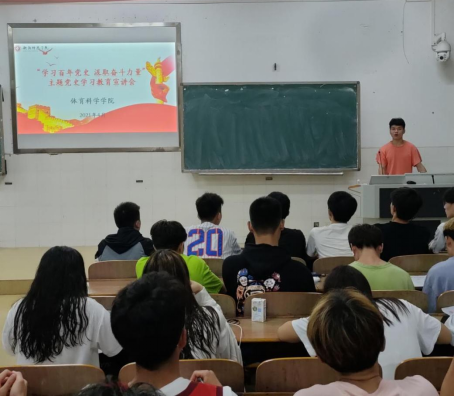 2021年4月21日,fun88乐天使在数学楼507教室召开“学习百年党史,汲取奋斗力量”主题党史学习教育宣讲会暨红色观影活动。宣讲会上,fun88乐天使分团委副书记龙朔军同学对20级体育教育1-6班的同学解读了中国共产党由诞生、发展、壮大到建立新中国,以及带领全国人民全面建成小康社会,为“两个百年奋斗目标”和为实现中华民族伟大复兴中国梦而努力奋斗的艰难而辉煌的革命历程。同时,龙朔军同学组织同学们观看红色电影。