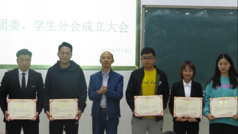 在同学们的鼓掌声中,最后由陈铖书记、郭丽老师和张周扬老师为员工干部和班导师助理颁发聘书并合影留念!