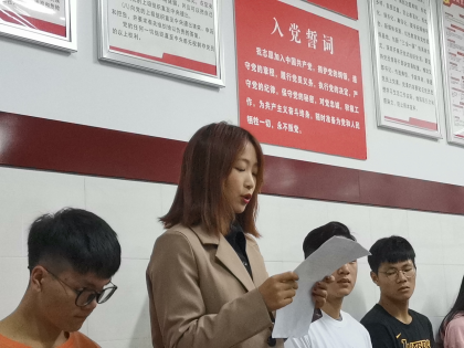 大会伊始,全体参会人员起立,奏唱《国际歌》。庄重的奏唱结束后,主持人郭丽老师宣布会议开始。陈铖副书记宣布了新党员名单。随后由辅导员郭丽带领22名新党员面对党旗重温入党誓词。宣誓仪式上,全体人员高举右拳,面向党旗庄严宣誓。铿锵有力的誓词,浑厚响亮的声音,每个同学都用发自内心的声音抒发对党忠诚的决心,面对着党旗,大家接受了一次身心的特殊洗礼。接着新党员代表赵登华以及入党积极分子代表郑媛作了发言。他们的演说词道出了所有预备党员、正式党员和入党积极分子的心声和在党旗下宣誓的激动心情和崇高的使命感,他们表达了自己会恪守在党旗下的诺言,更加严格要求自己,时刻保持共产党员的先进性和先锋模范作用,努力使自己成为一名优秀共产党员的决心和信心。宣誓结束后,全体党员投票选举新一届员工党支部委员会。经选举胡鑫、骆银源当选员工支部委员。最后,胡建忠书记代表公司党委总支向新党员表示了衷心的祝贺,并对新党员提出了三点要求:第一,希望新党员能够按照宣誓词践行自己;第二,在学习、工作、生活各个方面起先锋模范作用;第三,加强党的知识理论学习。