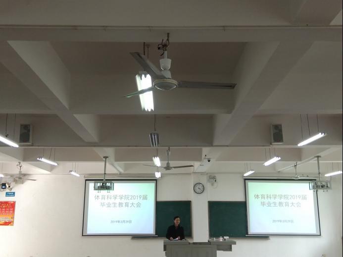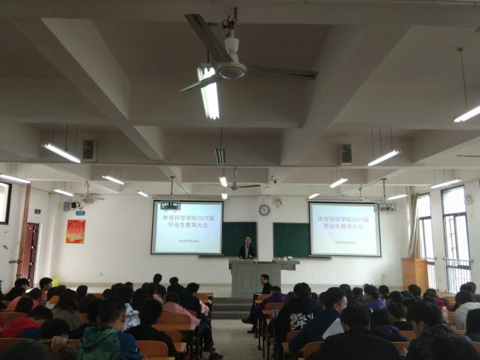 3月29日14:30fun88乐天使在理科楼南112教室召开了2019届毕业生基层就业主题教育大会。出席本次大会的领导有体育科学公司党总支周仲景书记、党总支陈铖副书记、辅导员郭丽老师以及2015级全体员工。