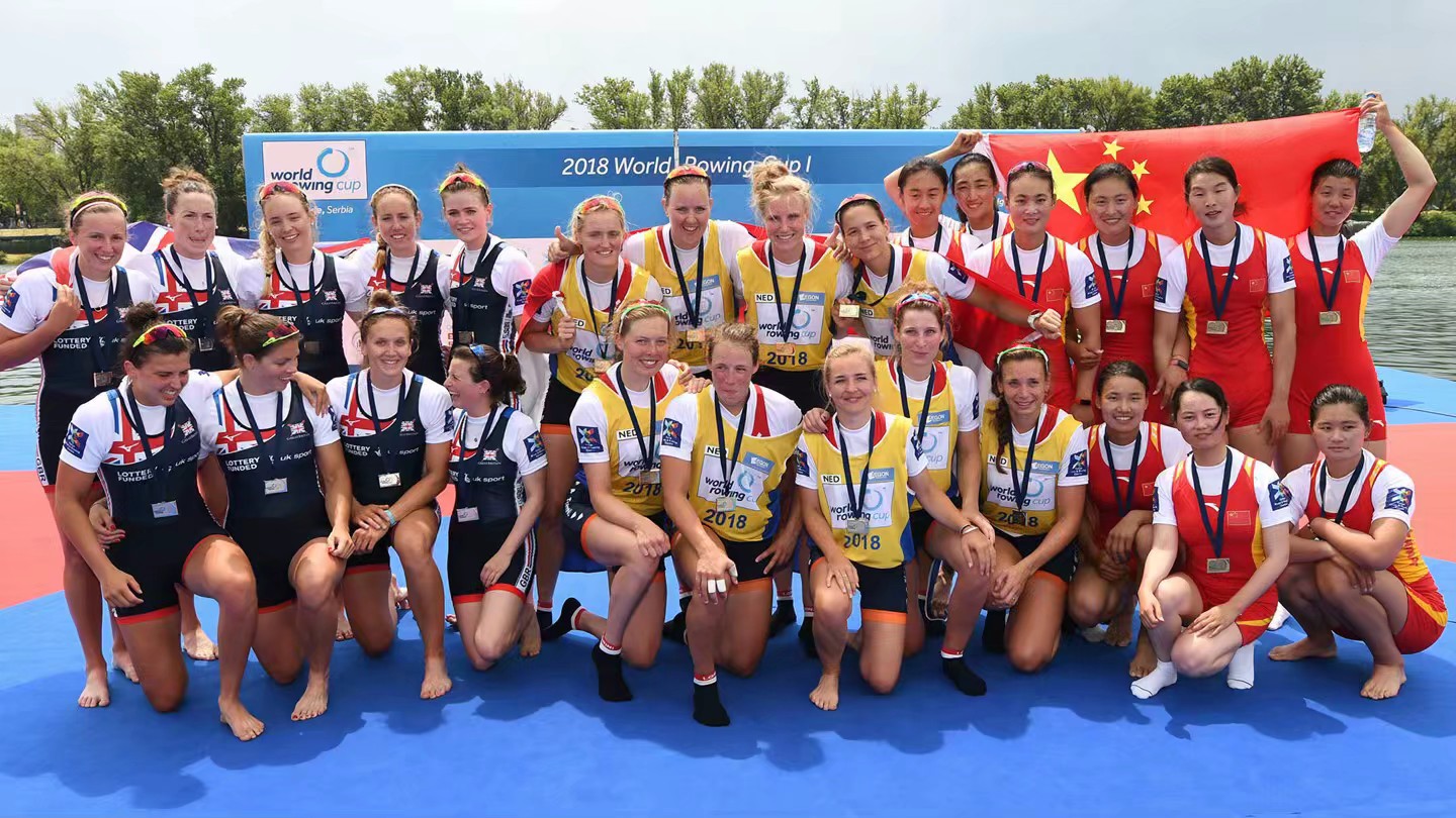 易立琴参加2018年世界杯女子八人单桨有舵手比赛获第三名